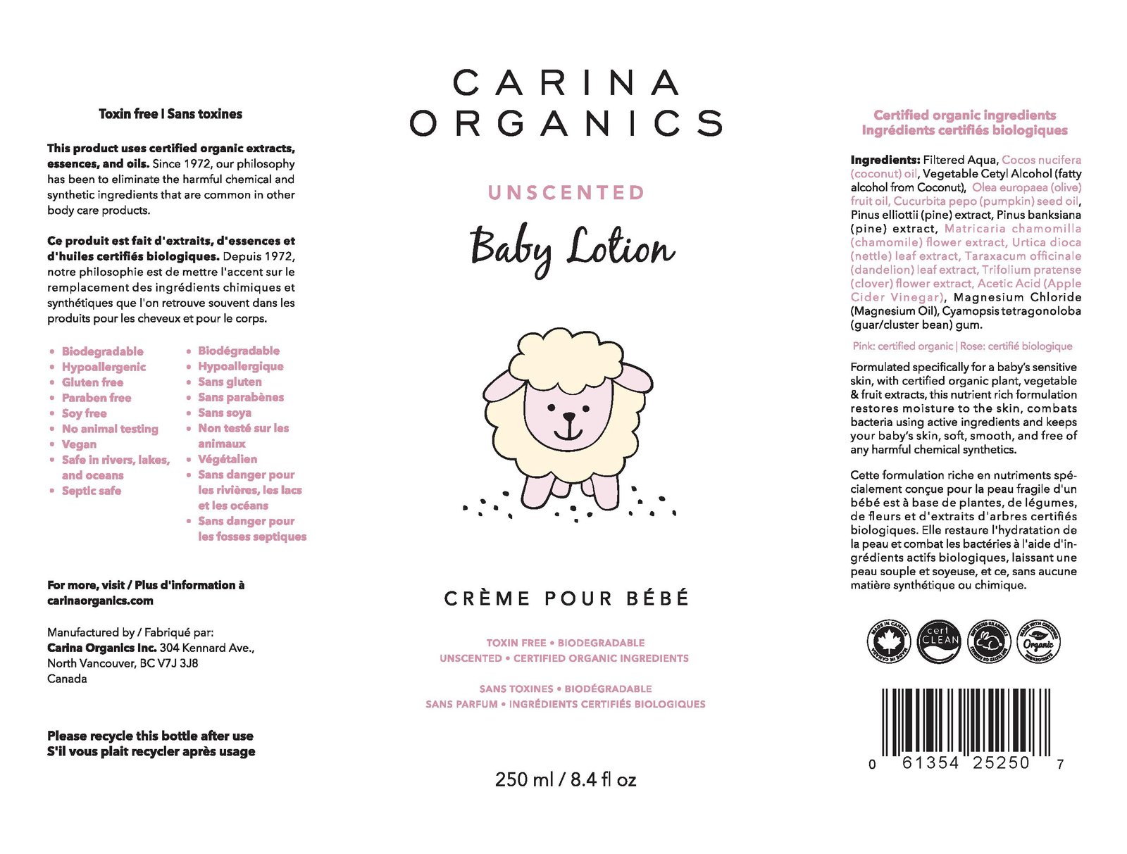 | Model Name | Carina Organics Extra Gentle Baby Lotion, Organic & Natural, for Sensitive Skin, Whole Body, 8 fl oz |