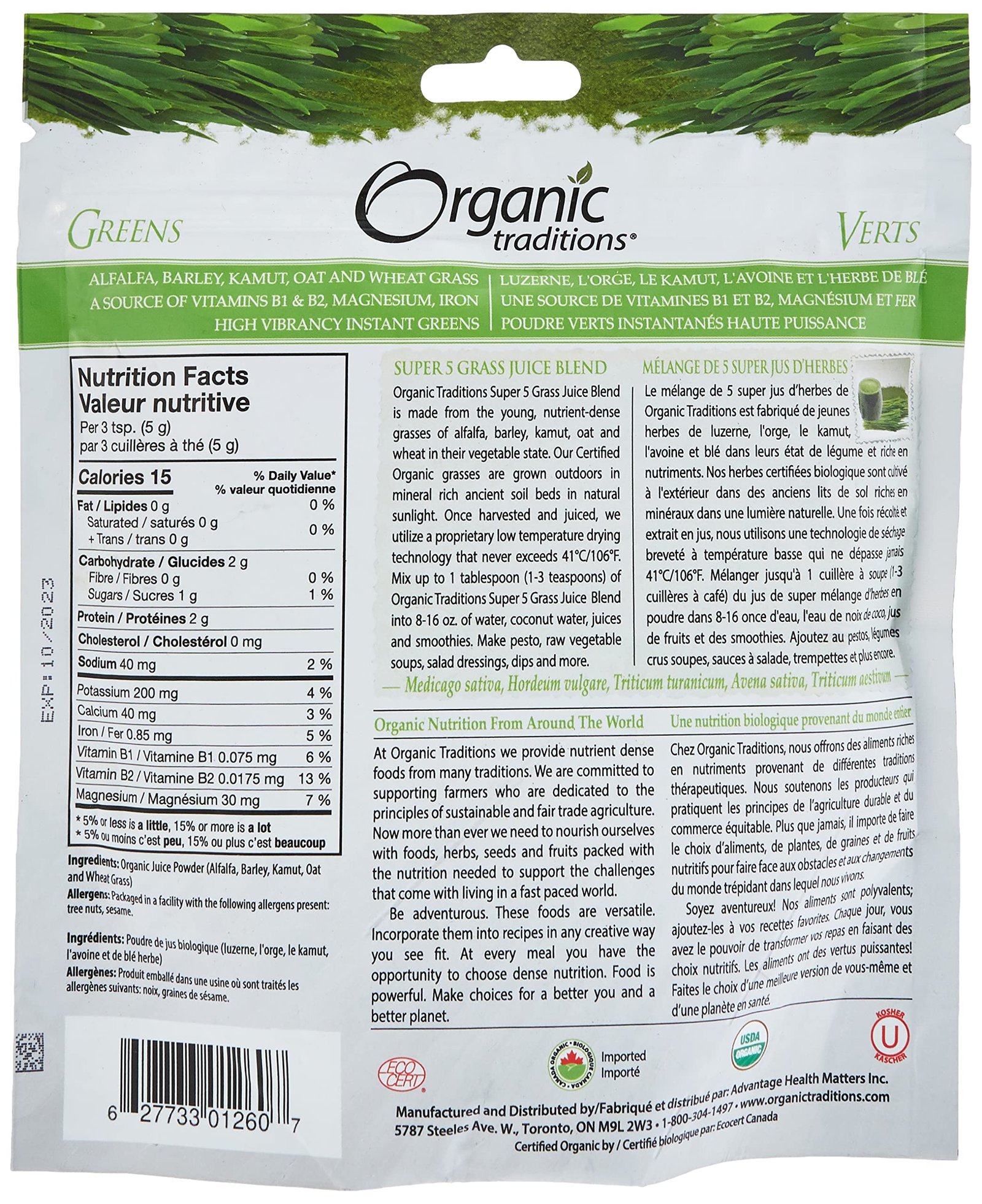 Organic Traditions Super 5 Grass Juice Blend, 150 GR